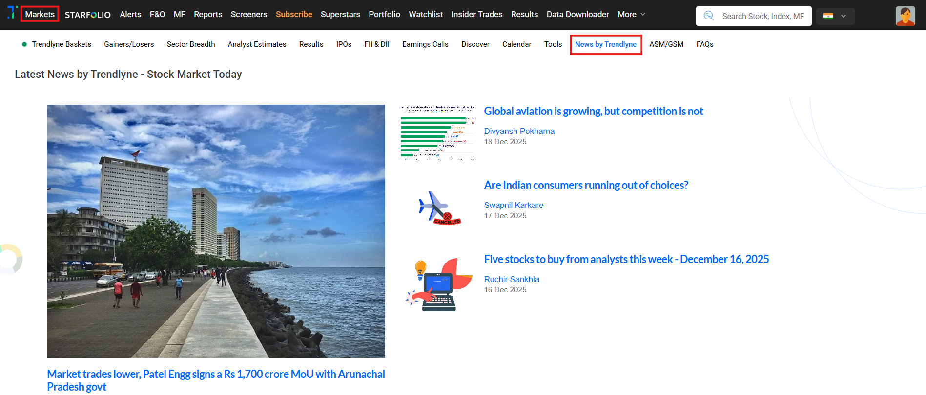 The News by Trendlyne section on the mobile application and on the website provides users and subscribers with original analysis from Trendlyne’s team of in-house analysts. These include a live market blog–MarketWatch, deep-dive articles on companies and sectors, analyst picks, and much more.