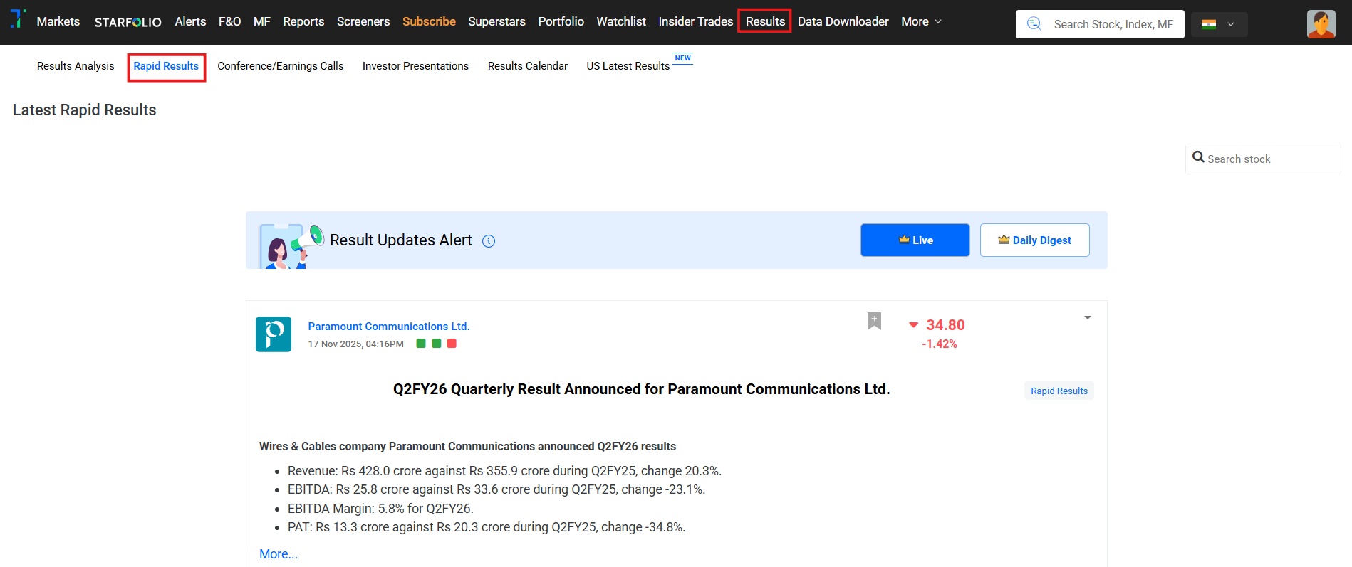 Rapid results are the results shared by the companies on the basis of their performance over the quarter which is readily available for investors on the go.