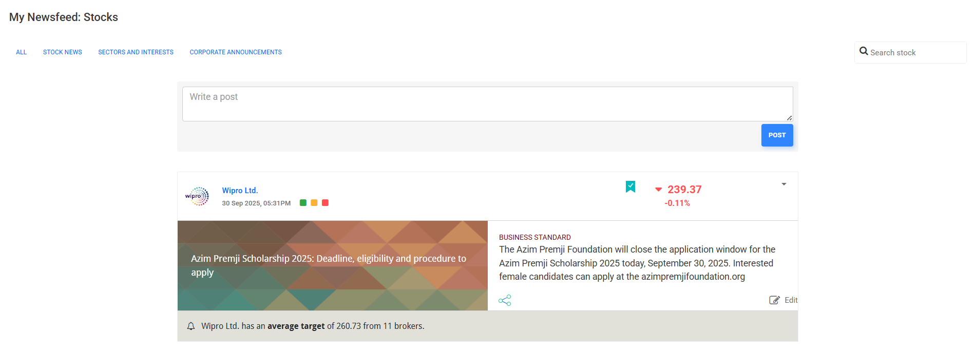 Portfolio News provides access to all relevant news articles and write-ups on the stocks in your holdings.