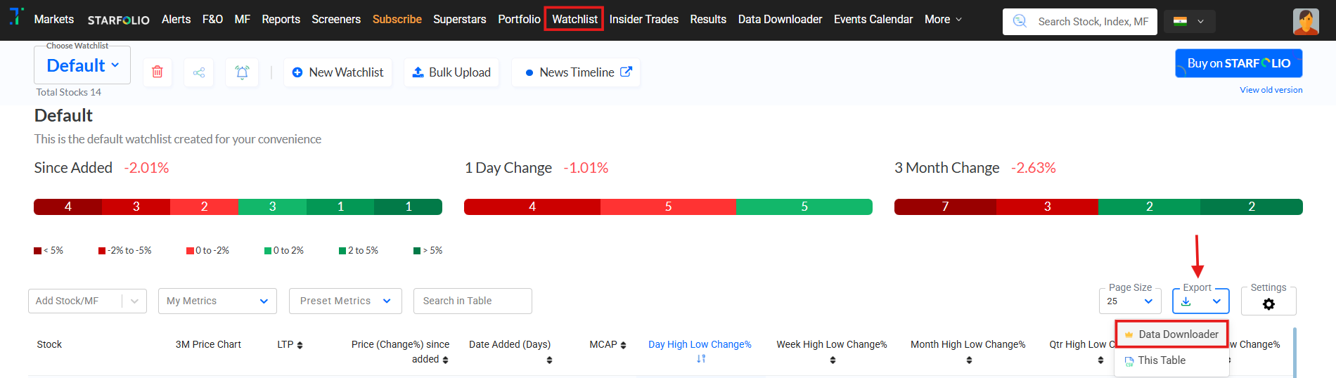 The steps to download data using this feature are the same across Screeners, Portfolios, or Watchlists.