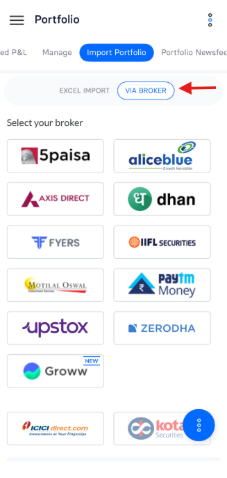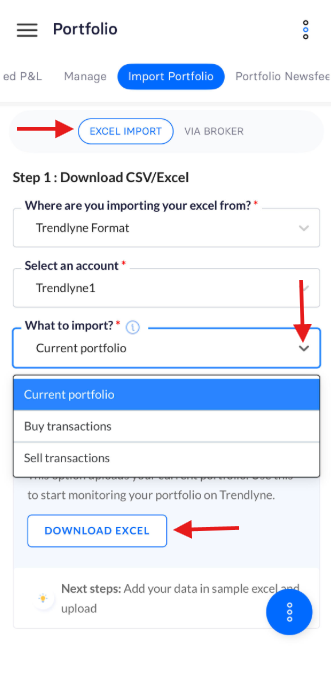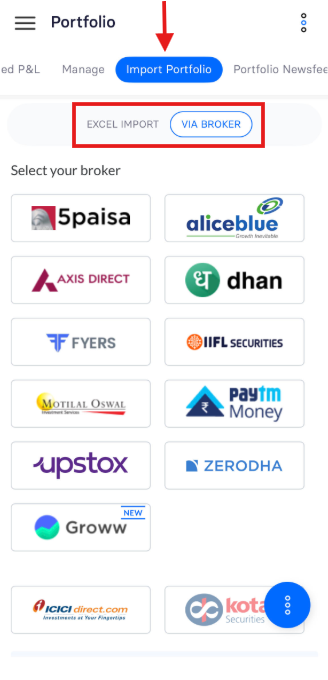 Upload the saved Excel sheet to the app. Once the Excel import is complete, you'll see the list of imported stocks in your portfolio.