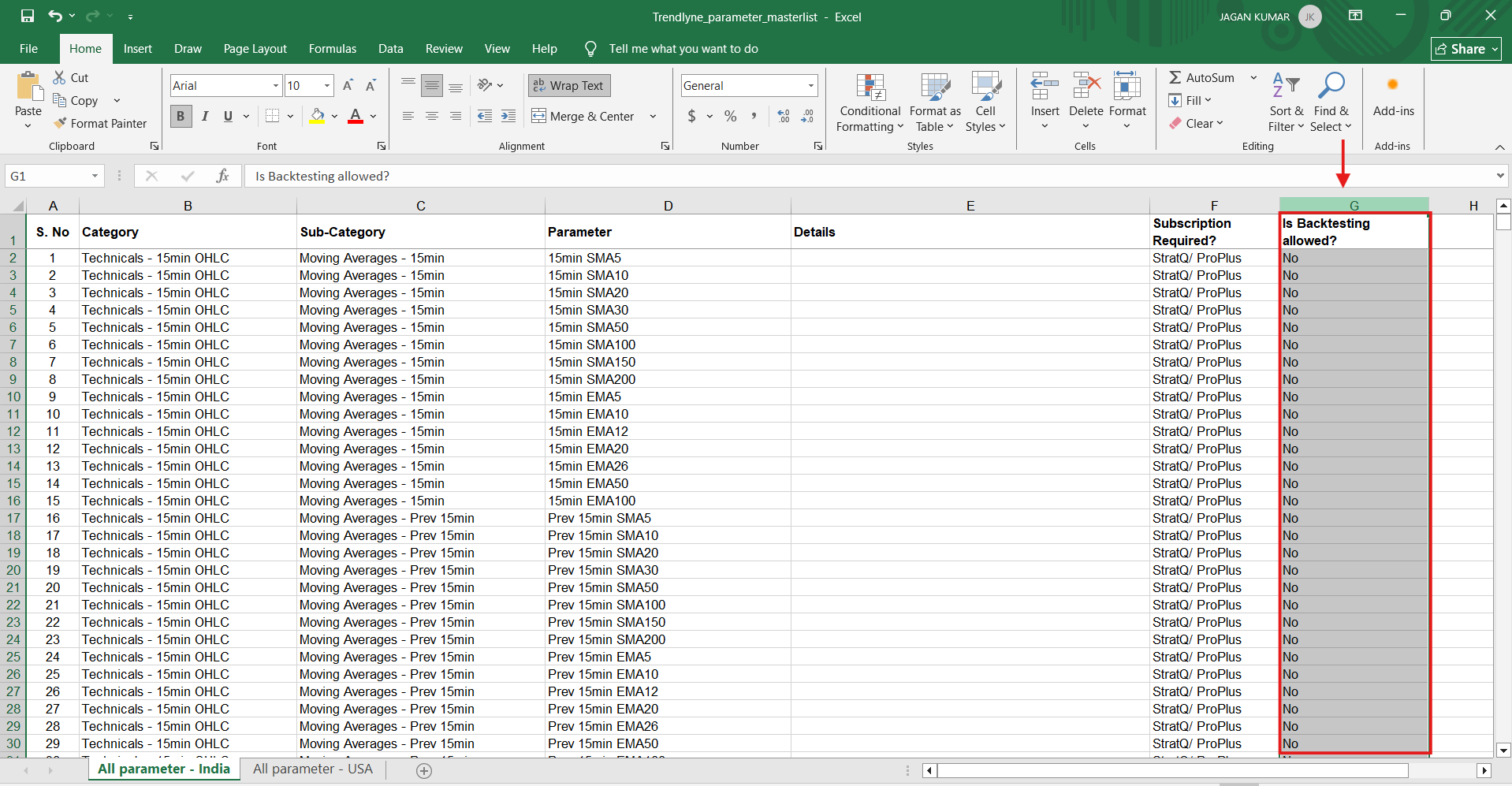 In this sheet, the “Is Backtesting allowed?” column indicates whether a parameter is supported for backtesting, as shown in the image below.