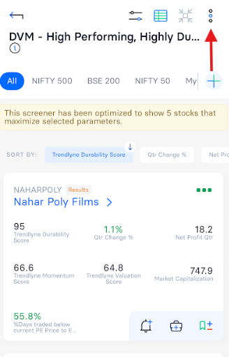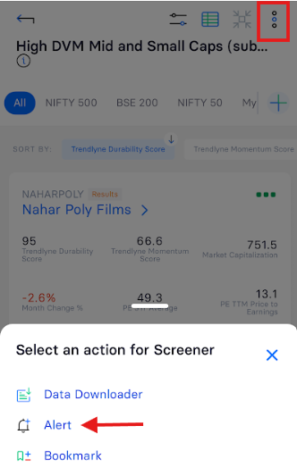 You can easily bookmark or set alerts for any screener by following these steps:
