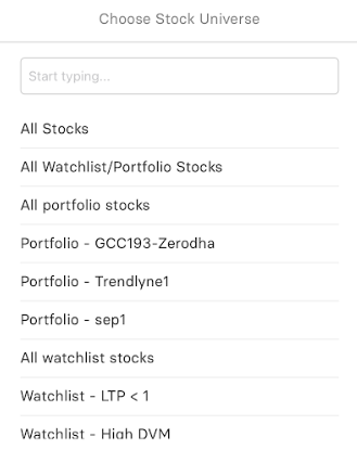 Stock Universe: You can select a stock group, index, portfolio, or watchlist to receive the screener alert.