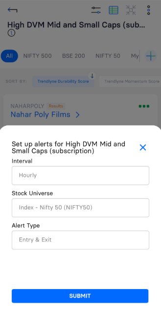 Alert Type: You can set up alerts based on the entry and exit of stocks in the screener.