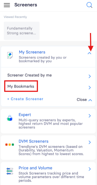To bookmark a screener for quick access, follow these steps:
