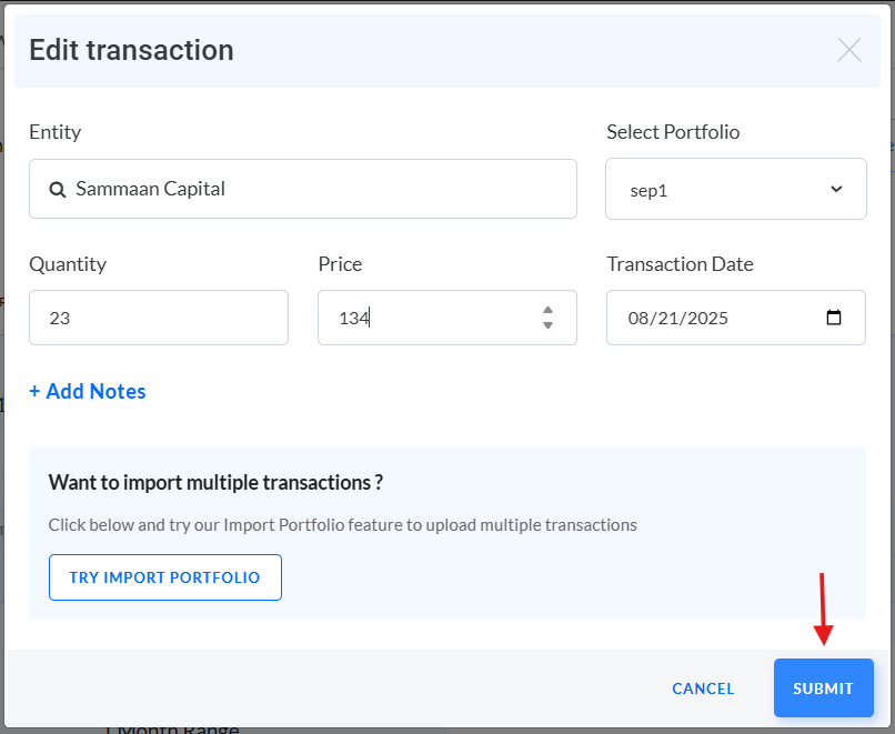 You can edit portfolio holdings that were manually created or imported via Excel by following these steps: